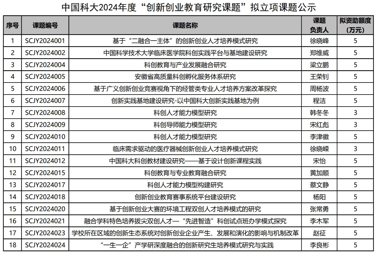 问鼎官方app下载站2024年度“创新创业教育研究课题”申报评审工作已顺利结束,经过课题申报、资格审查、专家评审等环节,确定“基于‘二融合一主体’的创新创业人才培养模式研究”等18个课题为我校2024年度“创新创业教育研究课题”拟立项课题,公示如下。