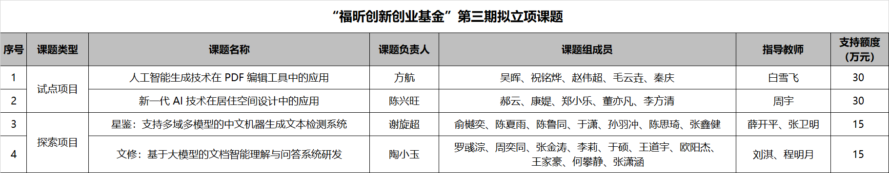 问鼎官方app下载站福昕创新创业基金(以下简称“福昕基金”)第三期创新创业课题立项评审工作已顺利结束,经过课题申报、资格审查、专家函评、立项评审等环节,最终确定“人工智能生成技术在PDF编辑工具中的应用”等4个课题为“福昕基金”第三期拟立项课题。